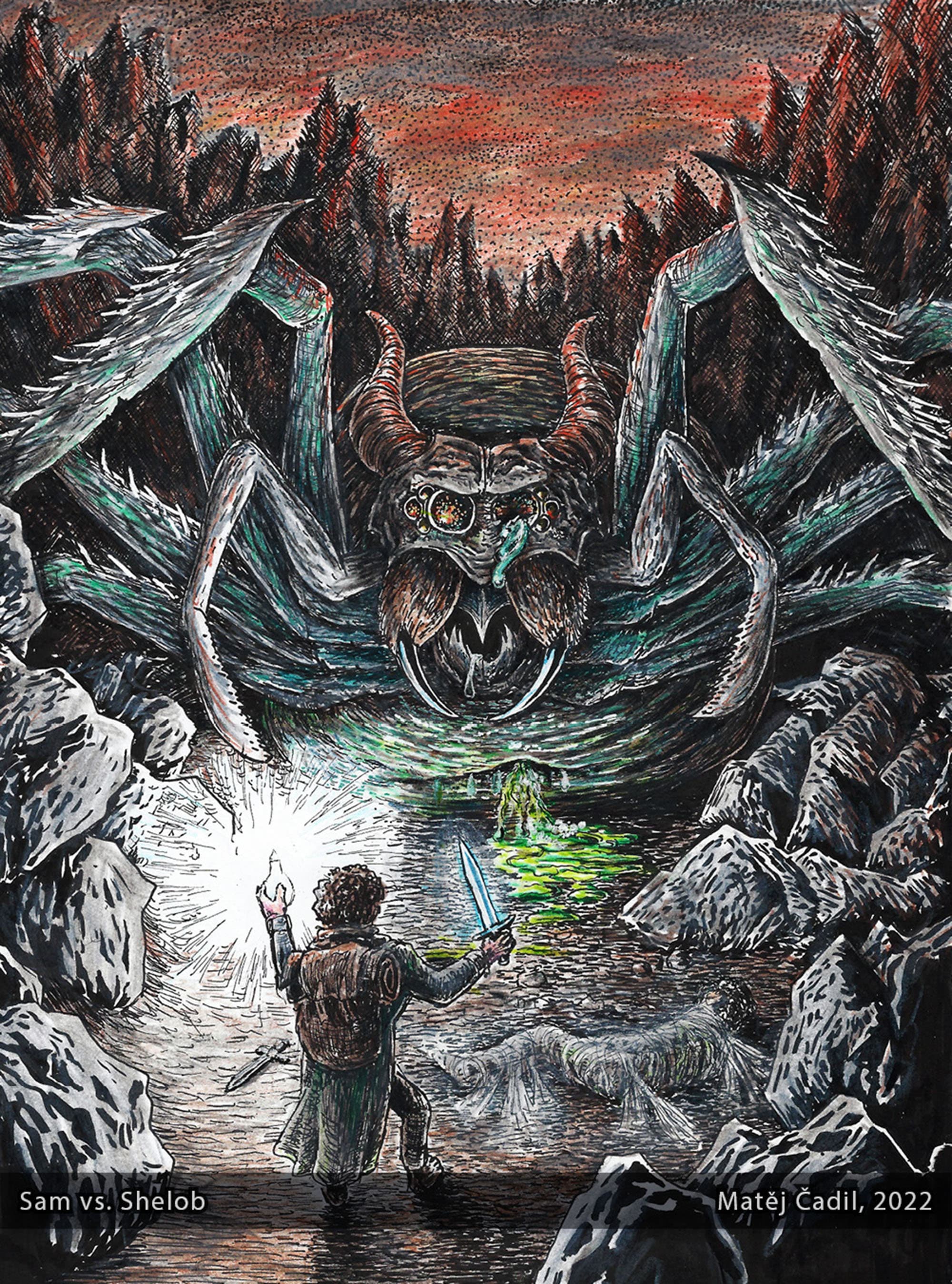 Sam Vs Shelob Original Illustration Lord Of The Rings Etsy Uk