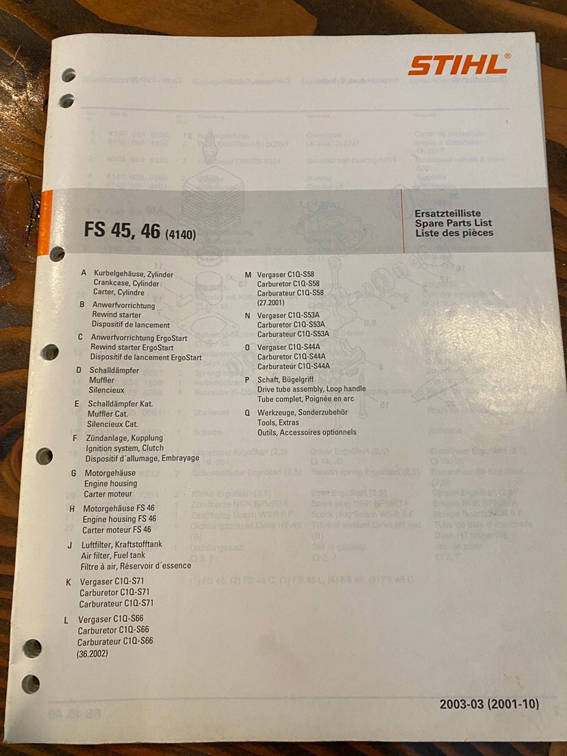 Original Stihl Fs 45 46 Illustrated Spare Parts Manual Ebay