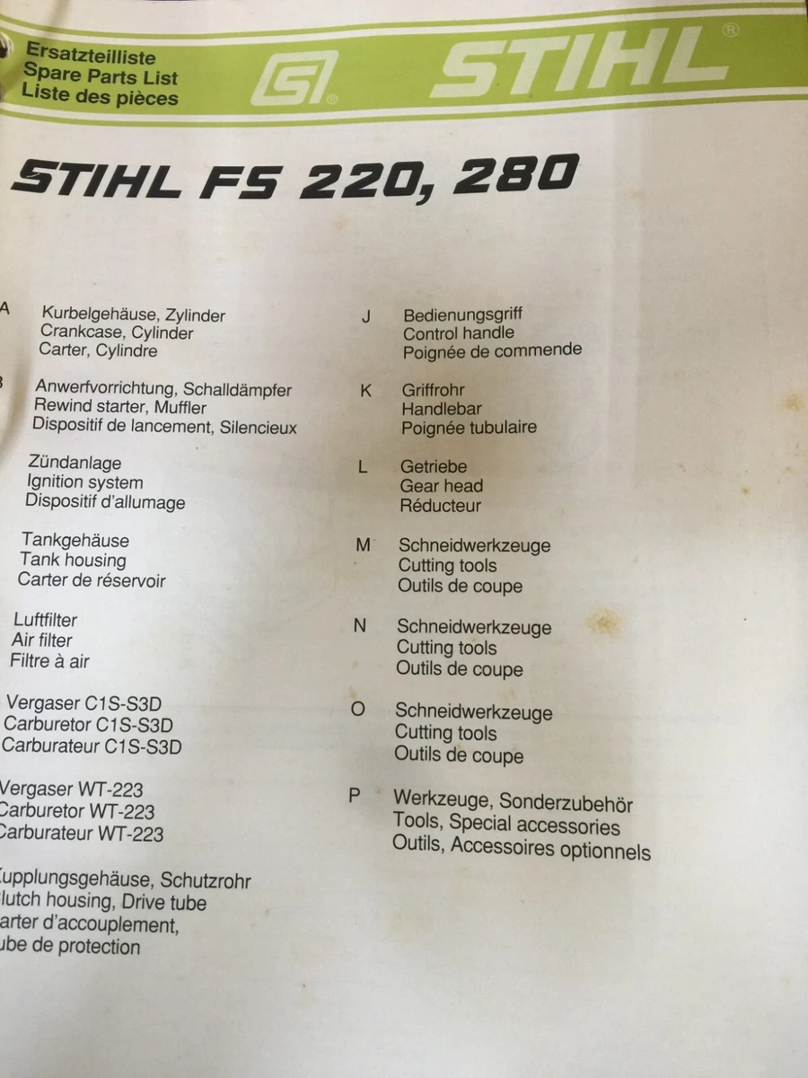 Stihl Fs 220 280 Nos Parts Manual Ebay